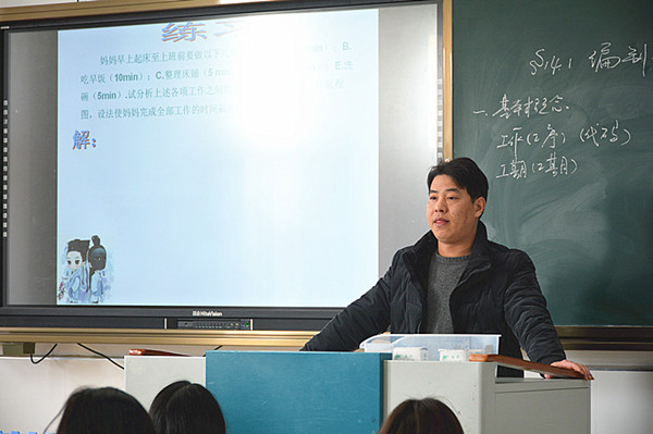 上午第二课,区教体局职教科科长、海门中专挂职副校长顾靖锋,在副校长茅一娟,教学科研部主任杨一丹、经贸系主任施红华及相关教师的陪同下共同听取了王剑平老师在19MD02班开设的《编制计划的概念》一课,王剑平老师用贴近学生生活的案例拉近学生和数学的关系,激发学生的学习热情,用环环相扣的探究活动,层层深入,达成了教学目标。