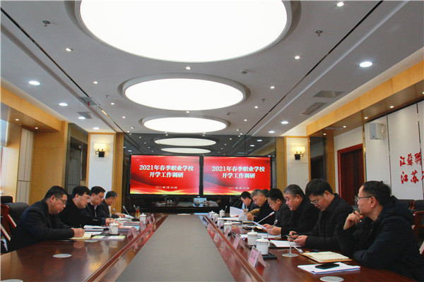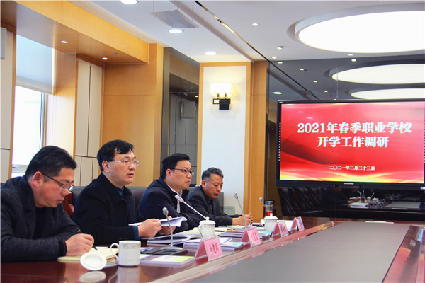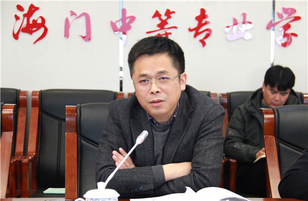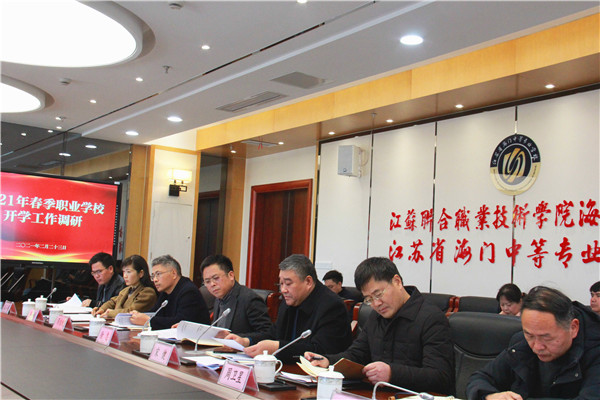 2月23日上午,海门区教体局副局长曹慧忠、职业和社会教育科科长顾靖锋、副科长马建国、科员唐庆军组成的2021年春季职业学校开学工作调研组来到海门中专调研,校长室全体成员参与。 深入课堂 把脉教学 上午第二课,调研组深入各系部,随机听取了几位老师的随堂课。课后,调研组成员检查了教师的教学计划、备课笔记等情况并与上课教师做了交流。他们对教师的备课充分度、课堂气氛活跃度、师生精神饱满度给予了高度评价。 汇报交流 守正创新 随后,调研组、校长室全体成员及相关部门负责人在百度厅进行座谈交流。 首先,校党委书记宋健作开学工作汇报。他围绕本次调研内容,以“守正创新,奋力跑赢新五年开局第一棒”为主题,用“目标明确”“思路清晰”“举措扎实”三个关键词,从三个方面作了简要汇报:一是提前准备、严格落实,确保新学期开学安全平稳;二是立足当下、着眼长远,为做好新学期工作夯实基础;三是突出关键、全面统筹,力争各项重点工作加快推进。 接着,校长徐忠补充发言。他分析了海门中专过去所拥有的各项品牌优势以及未来面临的新形势、新挑战。他强调,针对职业教育的发展特点,海门中专将坚持“守正创新、提质培优”的工作总基调,守好学校对口单招、专转本等品牌优势。他相信,在区教体局的正确领导下,海门中专一定能抢抓发展机遇,创造出职业教育的美好未来。 总结反馈 助力发展 海门区教体局副局长曹慧忠作调研总结。曹慧忠高度肯定了学校教育、教学、后勤等方面的工作,认为学校开学工作平稳有序,举措扎实。他希望海门中专能继续发挥好党建引领作用,继续维护好对口单招品牌优势,继续拓展好职业教育的社会服务途径,继续推进好校企融合工作,为海门职教的可持续、高质量发展再交一份满意的答卷。