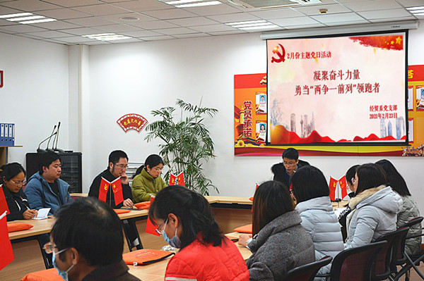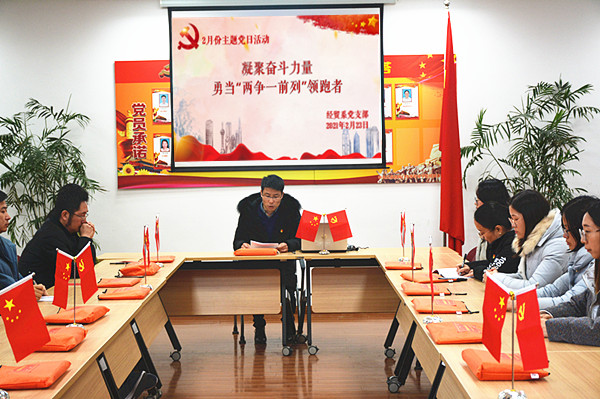 2月23日下午15:20,经贸系党支部在C2-209党员活动室开展“凝聚奋斗力量,勇当‘两争一前列’领跑者”主题党日活动。活动由支部书记陈忠平同志主持,共分三个议程。