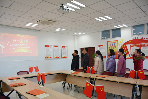 第二项议程,重温入党誓词。支部书记徐亮带领大家重温入党誓词,一声声铿锵有力的誓言正是提醒在场的每位同志回顾入党时的真诚和激情,坚定信念,不忘光荣使命,不负神圣职责。