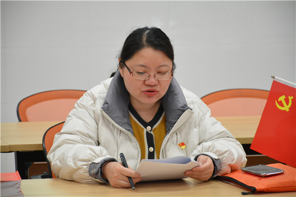 第二项议程:党员话感言。党员张慧琴表示,我们要坚定信心,鼓足干劲,稳步前进。陆洪兵老师感慨地说,中华民族实现从站起来、富起来到强起来的伟大飞跃,靠的是中国共产党的坚强领导、中国人民的不懈奋斗。党员潘玮激动地说,我们要听习总书记的话,发扬三牛精神,在两争一前列领跑下,做一名优秀的共产党员。