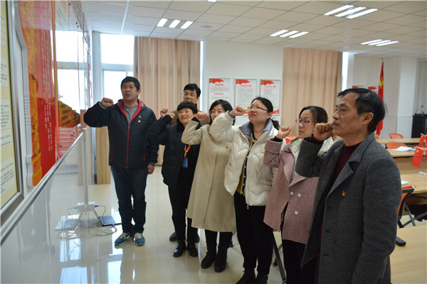 第三项议程:重温入党誓词。大家在支部书记朱敏敏的带领下,重温入党誓词,在鲜红的党旗下,全体党员佩戴党徽,举起右手、握紧拳头,庄严宣誓。党员们重温入党宣誓时的庄严承诺和坚定决心,牢记共产党员的政治责任和历史使命,不断保持共产党员的先进性,以更加饱满的热情投入教育事业。