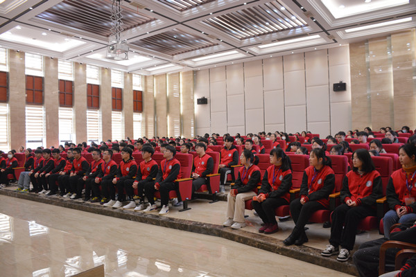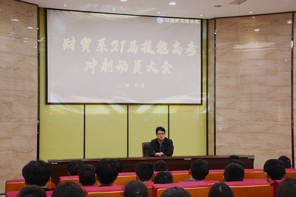 3月2日中午12:15,财贸系在謇公楼名匠报告厅召开了2021届高三技能高考冲刺动员大会。财贸系18级全体班主任带领本班学生参加了会议,会议由王飞主任主讲。