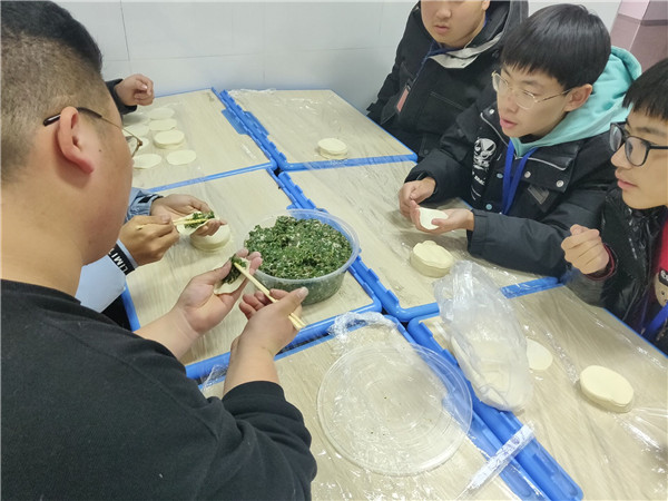 事前班委们积极商讨活动方案,各项准备工作井然有序。随着所有用具食材准备就绪,包饺子活动正式开始!同学们分组围坐在一起,大家纷纷动手实践,会包同学有条不紊,不会包的同学现学现做。很多同学是第一次包饺子,虽然动作僵硬,但他们的热情丝毫不减。圆的扁的,馅多的馅少的,有褶的无褶的,不一会,各式各样的饺子陆续出炉。老师也与同学们一起参与其中,场面很是精彩。不知不觉,饺子包完了。当一笼笼蒸好的饺子在热气腾腾中被端上台,同学们的成就感油然而生。吃着自己包的饺子,大家感受到了享用劳动成果的喜悦。