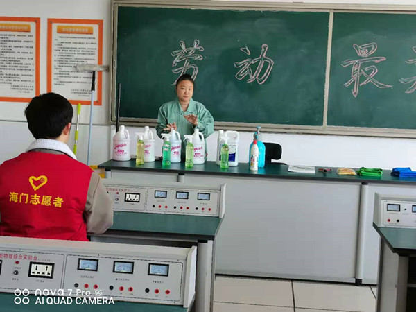 为了让学生崇尚劳动、爱上劳动,帮助学生学会基本劳动技能,3 月 2 日下午 2:30,物业公司项目经理吴健健带领物业人员在 F 楼 501 室给学 生志愿者们上了生动的一课。 培训会上,物业人员给学校“石榴子”社团联劳动类社团学生依次介 绍了消毒液种类、正确配比及使用,劳动工具的种类及正确使用,警示牌 的正确放置等,并在现场给学生做了擦玻璃、拖地板等基本卫生打扫的技 巧示范。听了物业人员的专业讲解,学生们跃跃欲试,纷纷拿起劳动工具 进行了实践操作,物业人员从旁给他们进行了专业的指导和纠正,他们表 示原来打扫卫生也有这么多的技巧和方式,他们为能学到新技能、新技巧 而高兴,今天这一课,让他们受益良多! 劳动教育是新时代教育的重要任务,物业公司的这一劳动技能课程既 接地气,又有实效,为学生提供了很好的劳动教育范例。(后勤服务中心 李 剑)