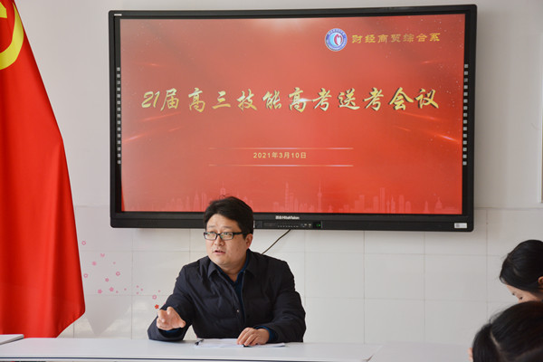 3月10日中午12:10,财贸系在謇公楼226会议室召开了2021届高三技能高考送考会议。财贸系全体送考老师准时与会,会议由王飞主任主讲。