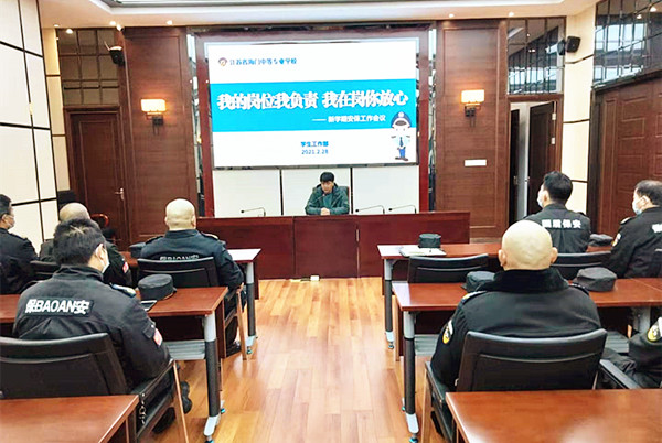 2月28日上午7点,海门中专新学期安保工作会议在A楼阿里厅召开。学生工作部主任张海华、全体安保人员参加了会议。 会议主要对新学期安保工作进行部署,对进一步做好校园安保服务工作提出要求。 学工部主任张海华从校园保安职责任务出发对安保工作进行梳理。与此同时,对各安保人员提出工作要求:强化门卫管理,严把校园出入口关,严格执行外来人员验证登记准入制度;密切关注入校携带物品,对违禁物品,一经发现,一律予以收缴上交;严格进出校园门锁钥匙管理,做好南操场的管理;做好学生上下学高峰时段进出入校园的安全疏导监护;同时严格访客预约、访客审批、访客登记及签离工作的流程。 在讲话中,张海华对夜巡工作、安稳工作簿记表册的填写、安保设备保管爱护及环境卫生等工作的重点和细节进行了强调。张海华指出,校园安保工作辛苦繁琐、责任重大,需要耐心、恒心和责任心三心到位;在工作中各安保人员要提高认识,明确责任使命,克服松懈麻痹思想,一定要做到思想重视不松懈,工作要落实做细,巡逻检查要到位,处置汇报要及时。(供稿:学生工作部)
