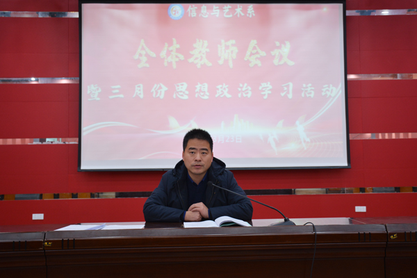 为调动全体教师的工作积极性,明确后阶段努力的方向,3月23日上午9:20,信息系组织召开了系部全体教师会议暨3月份思想政治学习活动,会议由徐亮主任主持。