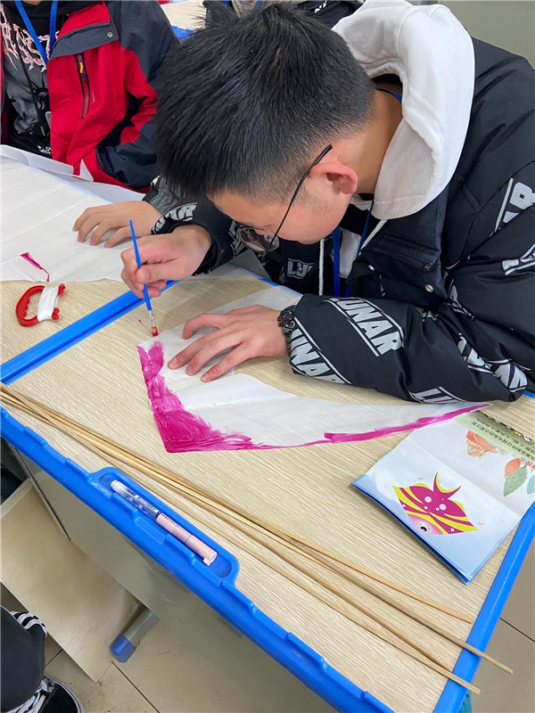 社团指导老师首先给同学们介绍风筝的制作流程,随后,同学们按小组拿出事先准备好的白色的风筝以及手绘需要用到的颜料和画笔,纷纷投入到了风筝DIY活动中,同学们对风筝的图案充分发挥了自己的想象力。有栩栩如生的燕子,有充满意境美的风景画,有朦胧引人深思的星空,还有众多可爱的卡通图案。一张张无纺布让同学们天马行空,将之贴在架子上,系上风筝线就可以放飞天空。