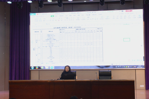 第二项议程,吴樱樱主任布置落实近期主要工作,结合2020年联院人才培养方案执行情况视导反馈对后阶段工作提出要求:一是要认真学习,对标对点;二是要直面问题,全面整改;三是要注重积累,随时备查。最后吴樱樱对人培方案的体例格式、涉及内容、教学进程框架设计、课时配备、人才培养要求及授课计划填写规范等做了剖析和培训。吴樱樱强调:十四五规划是每位教师的目标和追求,应合力作为,同心同航,朝向既定目标进军;作为老师,我们更要有理想信念、有道德情操、有扎实学识、有仁爱之心,情系教育,在平凡的岗位上做出不平凡的事情。