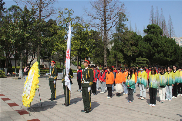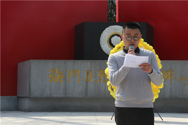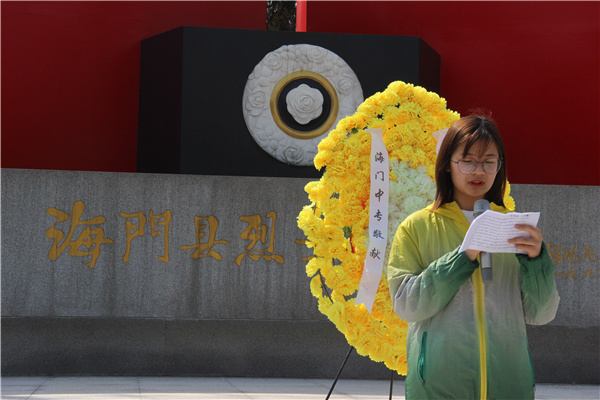 深情回顾党的奋斗历史,热情讴歌党的光辉业绩,继承发扬党的光辉传统,为致敬红色百年,海专文明祭忠魂。3月25日下午,我校各系部学生代表在学工部副主任陆晓曦、团委书记杨滨榕、团委冯勇杰老师的带领下,从学校出发,排着整齐的队伍,怀着对烈士无限崇敬的心情,坐校车来到南通市海门区烈士陵园开展清明节祭扫活动。 来到烈士陵园,同学们怀着无限崇敬的心情默哀三分钟,国旗班学生代表全校师生将寄托着无限哀思的花圈敬献给长眠于此的先烈们,借此表达对先辈们的沉痛悼念和无限追忆。 在活动中,信息系袁灵燕同学作为团员代表发言,她表示将肩负起艰巨的历史使命,为把中国建设成为富强、民主、文明的社会主义现代化国家而奋斗。 最后学工部陆晓曦主任对大家提出了殷切的期望,他指出,2021年是中国共产党成立100周年。要抓好青少年学习教育,让红色基因、革命薪火代代传承,引领全校广大青年回顾党的百年历史,缅怀革命先烈的丰功伟业,赓续共产党人精神血脉。各个时期的革命烈士都是时代的先锋、民族的脊梁、祖国的功臣,他们的精神光照千秋,永垂青史。他希望大家继承革命烈士遗志,学习革命烈士精神,努力提高自己的文化知识水平,思想道德素质,随时准备着为祖国的需要贡献自己的力量。 仪式结束后,同学们参观了海门英雄纪念馆,看着那些全景影像和先烈遗物,同学们在思想上得到一次真正意义上的洗礼。我们是幸运的一代,我们是幸福的一代。而我们的幸福是他们赐予的。 通过这次活动,先烈们的革命精神对后世的勉励,让同学们懂得了今天的幸福生活来之不易。我们衷心地感谢革命先烈为我们创造出的美好生活。逝者已矣,来者可追。相信在将来同学们会践行他们的承诺,做一个积极向上,热爱生活,情趣高尚的人,并明确自身肩负的历史使命,进一步增强自身的历史责任感和民族使命。(团委 冯勇杰)