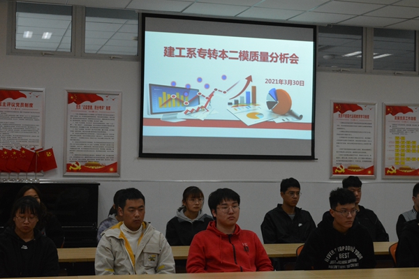 3月30日上午,建工系召开了21届专转本二模质量分析会。系办朱敏敏主任、张永辉副主任、专转本任课教师和全体专转本学生参加了本次会议。
