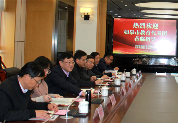 4月1日下午,如皋教育代表团一行八人在如皋市教育局副局长冯志刚带领下来校考察交流。南通市海门区教体局副局长曹慧忠,教体局职业和社会教育科科长顾靖锋、副科长马建国,南通市海门区教育考试中心主任陆幸陪同。 座谈会在百度厅召开。校长徐忠,党委书记宋健,副校长周卫星、茅一娟参加座谈。 双方就两地中职校“十四五”发展规划、招生计划结构安排、独立建制的五年制分院设置、社会服务等话题交换了意见。 冯志刚说到,如皋、海门的职业教育很多做法“差不多”,社会认可度高、吸引力强。但如皋在招生结构比例调整方面存在一些“困难”“困惑”,海门中专在这方面的做法值得借鉴学习。 徐忠围绕招生情况、专业体系设置、分院建设等方面分享了学校做法,表示近几年职业教育的路走得“正”了、“稳”了,但要得到社会更多认可,还要争取做出更多的“名堂”来。 会上,曹慧忠、陆幸就海门初中生源、海门中专招生等情况作了简单介绍。 最后,代表团参观了服装、数控、汽修、AHK等实训场所。(顾佩佩)