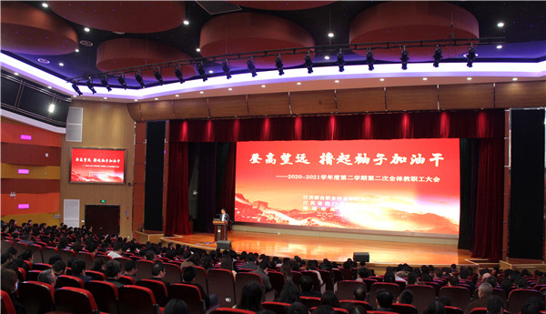4月2日下午,海门中专召开本学期第二次全体教职工大会,大会在謇公湖科教大会堂举行。校长徐忠作党史专题宣讲,校党委书记宋健作师德师风建设讲话,副校长茅一娟进行业务培训,会议由副校长周卫星主持。 校长讲党史 校长徐忠作题为“中国共产党百年辉煌”的党史专题宣讲。 徐忠分享了中国共产党百年发展历程,加深了全体教职工对“中国共产党为什么能”“马克思主义为什么行”“中国特色社会主义为什么好”的理解,号召大家“学史明理、学史增信、学史崇德、学史力行”,进一步明确了“没有共产党就没有新中国”。 徐忠讲述了中国共产党百年历史的四个历史时期以及期间完成和推进的四件大事:开天辟地——中国共产党在新民主主义革命时期完成救国大业;改天换地——中国共产党在社会主义革命和建设时期完成兴国大业;翻天覆地——中国共产党在改革开放和社会主义现代化建设新时期推进富国大业;惊天动地——中国共产党在中国特色社会主义新时代推进并将在本世纪中叶实现强国大业。 徐忠强调,“看历史,就会看到前途”,因为历史是从昨天走到今天再走向明天的,历史的联系不可割断。学习重温中国共产党百年历史,我们应该坚定中国共产党历史自信,同时,坚定中国人民和中华民族未来自信。不忘初心、牢记使命、永远奋斗,中国共产党一定会谱写新的篇章,创造新的更大辉煌! 书记讲师德 校党委书记宋健以“弘扬工匠精神 争当‘四有好老师’”为题发表了师德师风建设讲话。 宋健从“教导重温”“现象聚焦”“原因剖析”“措施加码”四个方面向全体教职工再次强调师德师风建设要求:进一步加强党建引领和全面从严治教,进一步加强制度建设和全时从严监管,进一步加强标准优化和教学规范落实,进一步加强主动发展和团队螺旋提升。 宋健强调,作为新时代的人民教师,我们都肩负着“为党育人、为国育才”的光荣使命,都要认真回答好“为谁培养人、培养什么人、如何培养人”这一时代命题,所以我们首先要解决好“什么人培养”这个问题,从讲政治、谋发展、赢未来的高度,从讲良心、担责任、强本领的角度,努力做一名让学生瞧得起的老师、让自己心安的老师、让学校骄傲的老师、让学校历史铭记的老师。 分管校长讲业务 副校长茅一娟以“新版职业教育专业目录‘新’在何处”为题解读了新版《职业教育专业目录》。 茅一娟指出,新版《职业教育专业目录》重在“对接‘四新’”(新经济、新业态、新技术、新职业),具体表现为面向战略性新兴产业重点领域,服务现代服务业重点领域,服务乡村振兴和绿色低碳发展,服务国家治理能力提升,服务新业态、新职业和推进专业升级与数字化改造。 茅一娟说,新版目录“实现了‘三新’”(新模式、新内涵、新编排),强化类型特征、统一目录体例框架、统筹调整设置专业、系统设计专业代码。 茅一娟强调,面对新版《职业教育专业目录》,要注意与原目录做好对接,灵活自主设置专业,带动专业质量提升,落实“职教20条”,构建高质量教育体系。 校长部署工作 徐忠对本学期开学以来的工作做总结并对后阶段工作作部署。 徐忠表示,开学以来,学校整体工作安全稳定、风清气正、亮点纷呈,常规工作有条不紊,领航工作有序进行,党史学习教育活动强势启动,常态化疫情防控得到落实。 徐忠用“想不到”肯定了两项成绩:一是2020年度宣传工作取得全国百强、南通唯一的好成绩,荣登“2020年度全国百强职院媒体”榜单;二是智能制造虚拟仿真实训基地获批省示范性实训基地培育单位并报送教育部。 徐忠指出,学校即将迎来两类大考(对口单招文化统考和专转本考试)、两次大型活动(高考出征仪式和“五四青年节”庆祝活动、两项工作(校内外考工考级工作和五年制办学水平迎评工作)。 登高望远,撸起袖子加油干。这次大会是党史专题宣讲会、是师德师风建设推进会、是教学业务培训会、是学校阶段工作总结部署会。