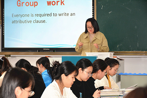 顾丽君老师围绕“自主·合作·探究”这一主题开设了“定语从句”的公开课。首先,顾老师通过对专转本考点和模拟考试单项选择题的分析,让学生知道定语从句的重要性;接着通过适时适度的引导,让学生充分利用小组合作,讨论写出例句;最后由各小组代表上台讲解,充分调动学生的积极性,让学生展示了自我风采。顾老师采用了启发式、探究式的教学方式,同时又加入易错题的讲解也成为本节课的一大亮点。