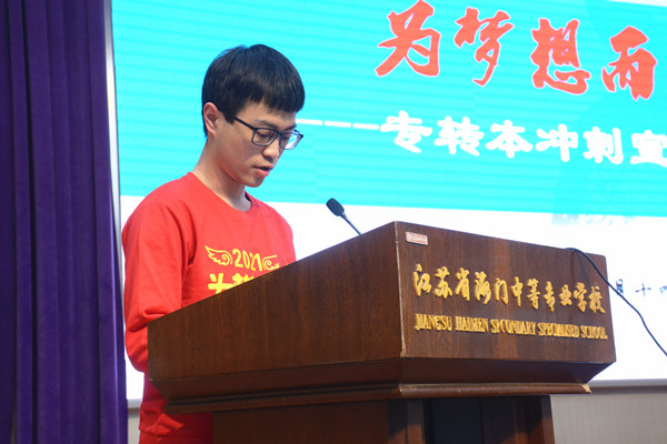 第三项议程,教师代表陈海滨发言。深情寄语,热情洋溢,鼓励全体学生铸就必胜信念,勇披战袍,全力以赴勇夺佳绩,登上辉煌的山巅。