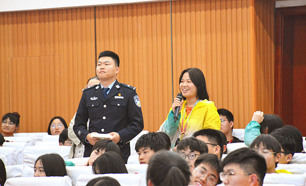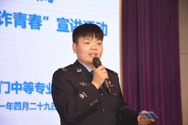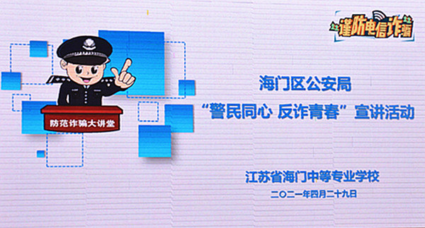 4月29日下午,海门区公安局反诈组在B1楼文苑报告厅举行了一场以“警民同心 反诈青春行”为主题的反诈宣讲。海门中专近400名学生参与了活动。 宣讲活动主要有说、讲、答、演四个流程。活动在观看微视频中拉开帷幕。 主持人用三个生动直观的微视频展示了当前电信网络诈骗比较普遍的诈骗类型,并告诉大家防范的关键就在于不听、不看、不信、不贪、不汇款、不转账。警察小哥黄雨澄用一首《反诈阵线联盟》将防范电信网络诈骗的妙招对同学们进行了普及。 反诈警员们以图文结合的方式为大家进行现场宣讲,提醒大家电信网络诈骗形式多样、套路很深、处处陷阱,一旦误入圈套,很容易上当受骗,同时也为大家带来了反诈锦囊妙计。 在现场“答题时间”环节中,会场氛围热烈,同学们积极踊跃,在答题中对反诈知识进行了及时地巩固。 宣讲员们用《竹板当当防诈骗》快板表演生动地宣传了防范电信网络诈骗的有效方法、关键措施和重要意义。活动结束后,宣讲员向同学们派发了反诈宣传资料。 宣讲活动是海门区委区政府为进一步有效打击治理电信网络诈骗违法犯罪活动,部署的为期三年的打击治理电信网络诈骗违法犯罪专项行动的组成部分。听完宣讲,同学们纷纷表示“涨”了很多知识,也意识到“了然于心”还需“付诸于行”,切实提高防诈意识。(供稿:学生工作部 黄 娟)