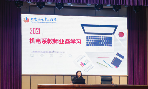 以规范促进提升。吴樱樱围绕课堂教学督导、期中考试成绩、学生管理、教师值班、技能大赛集训、实训建设等环节,强调细化规范的重要性,带领全体教师开展业务学习,着重学习了《南通市中等职业学校课堂教学评价指标(试行)》,希望全体教师进一步提高思想认识,前置管理端口,下沉工作重心,更务实更高效地开展好各项工作。