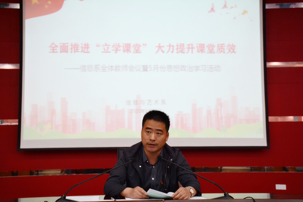为了营造人人参与教学科研的氛围,努力建设一支具有现代教师素质和创新精神的教师队伍,更好地做好近期工作,明确后阶段努力的方向,5月17日下午15:50,信息系组织召开了系部全体教师会议暨5月份思想政治学习活动,会议由徐亮主任主持。
