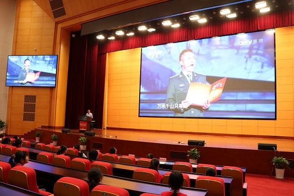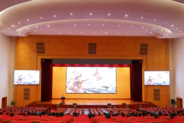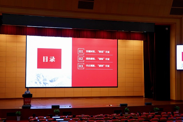 首先,观看微视频《永葆初心》。全体师生跟随习近平总书记的原声,回顾了中国共产党百年奋斗征程。随后,陈小军分三个篇章解读中华民族百折不挠、自强不息精神的最高表现“长征精神”。