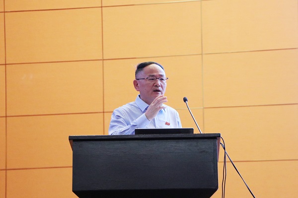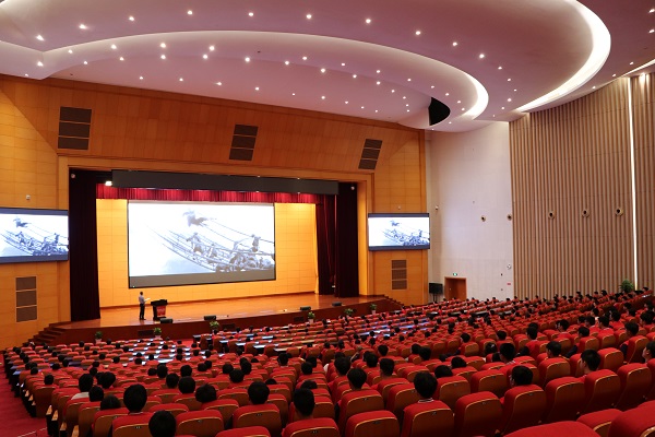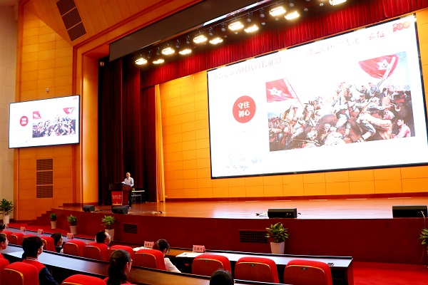 5月18日上午,中南建筑产业学院副院长陈小军在中南建设总部大楼三楼报告厅,以“红军不怕远征难”为题,为300多名师生讲授党史课。