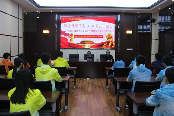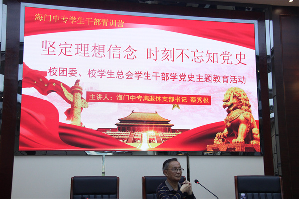 2021年5月18日下午3点,校团委在A楼阿里厅开展了校团委、校学生总会学生干部学党史主题教育活动。特别邀请我校离退休支部书记蔡秀松为学生干部们上了一堂“坚定理想信念,时刻不忘知党史”主题党课,活动由党委办主任洪龚明主持。 今年是中国共产党成立100周年,这个特殊的时代背景、历史节点下,每一名团员都要在新时代展现新担当新作为,每一名学生干部都要更加自觉地为实现新时代党赋予的历史使命而努力奋斗。蔡书记就结合自身学习党史、新中国史、改革开放史、社会主义发展史,围绕时刻不忘感党恩,一心一意跟党走,与同学生干部们一起交流。听课期间,同学们端正坐姿,认真听讲,学习了党史知识,在本子上记下了蔡书记所讲的关键内容。 蔡书记说:百年来,中国共产党紧紧依靠人民,跨过一道又一道沟坎,取得一个又一个胜利,创造了人类发展史上惊天动地的奇迹,让中华文明在现代化进程中焕发出新的蓬勃生机,让科学社会主义在21世纪焕发出新的蓬勃生机,使中华民族焕发出新的蓬勃生机。中国共产党的诞生是中国革命发展的客观需要,是马克思主义同中国工人运动相结合的产物。红色文化是同学们健康成长不可或缺的精神品质。 随后蔡书记又从中国共产党的建立过程,早期组织,正式成立,指导思想几方面,讲述了中国共产党诞生至今艰辛而又辉煌的历程。进而又讲述了中共海门县第一党支部三条桥党支部的建立过程。 通过此次学习活动,学生干部们更加充分了解了中国共产党的百年历史,更加坚定了共产主义信念,进一步换发工作和学习热情,以新的工作业绩为党的一百周年献礼。(团委 冯勇杰)