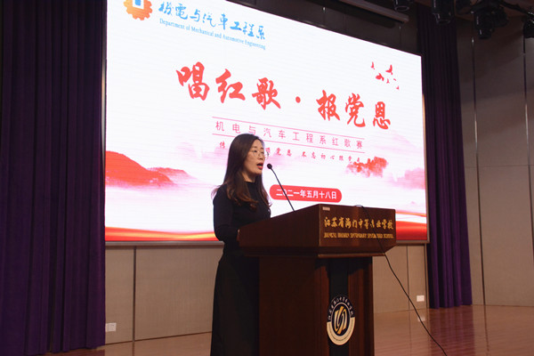 100年风雨兼程,100年砥砺奋进。5月18日下午,机电系组织18、19级学生在文苑楼报告厅举行红歌传唱活动。用红歌唤起红色记忆,唱出历史内涵,重温燃情岁月,让红色基因代代相传,用红色文化沁润心灵。黄颖老师主持活动,机电系党支部书记吴樱樱和18、19级班主任参加活动。