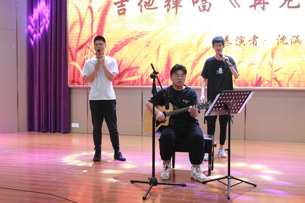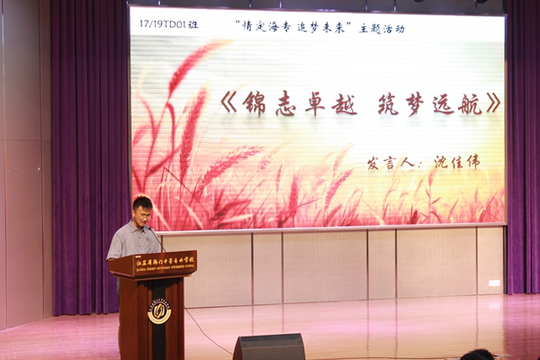 活动的第二项议程是听听同学们的心声。见习近在眼前,对于校园与班级,17级的同学们都有许多话想说。沈佳伟同学作为代表,以《锦志卓越筑梦远航》为主题发表了自己这四年来的感想。沈杰、陆文龙、卢正雅等同学作为班级杰出班干部,对自己在班级中的表现以及以后的规划进行了发言。17TD01班的沈涵骁同学用吉他为同学们演奏了一曲《再见》,现场气氛一度被推向了高潮。