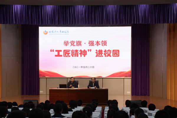 习近平总书记多次强调“要在全社会弘扬精益求精的工匠精神,激励广大青年走技能成才、技能报国之路。”5月20日上午,机电系开展“工匠精神进校园”活动,邀请党员外聘教师沈炎炎入校作专题讲座,并开设工匠实践操作党员示范课。机电系副主任黄引主持会议,20级学生参加活动。