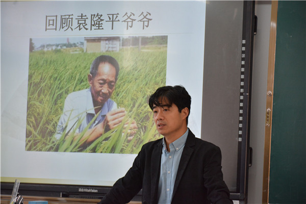 袁隆平一位真正的耕耘者。班会课上,各班级通过播放袁隆平的资料视频、讲述袁隆平的故事共同分享学习了袁老“一辈子只做一件事”的奉献精神。从故事的讲述中,学生充分了解了袁老伟大的人格、坚毅的精神和执著的品质。感受到了一个科学家对于祖国和人民的关爱。激发了学生的爱国热情。现在的学生从未经历过饥荒的年代,对于粮食,缺乏敬畏心理,借此机会,老师们教育学生不浪费一米一饭,珍惜每一颗粮食就是对伟人的最大的敬意。课堂最后,学生各自谈了想法,说出了自己的感悟,学生认为像袁老那样的科学家才应该是自己崇拜的对象,学生们表示要以老一辈科学家的精神激励自己,好好学习科学知识,将来为祖国贡献自己的力量。