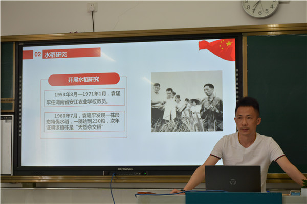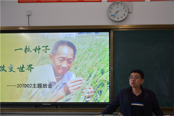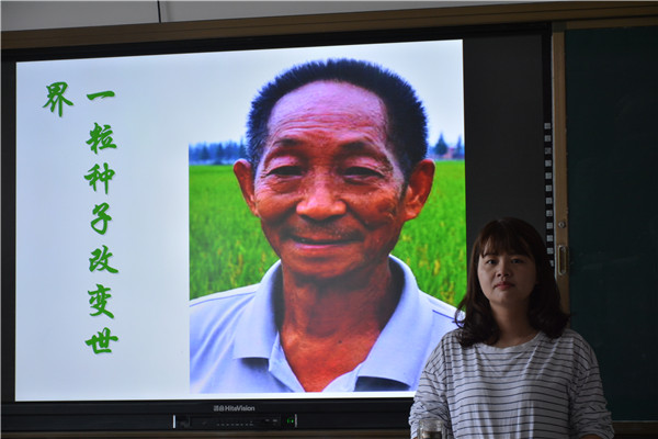 袁隆平先生从事杂交水稻研究已经半个世纪了,不畏艰难,甘于奉献,呕心沥血,苦苦追求,解决了困扰人类几个世纪的吃饭难题。在此次班会活动中,班主任通过故事和视频的形式跟同学一起回顾了袁老先生的奋斗历程,组织同学们讲述袁老先生的光辉事迹和不朽贡献,让同学们懂得了粮食的来之不易,并激发了同学们对袁隆平老先生的敬仰与尊重之情。袁隆平先生对事业的热情与责任感,远远地超过了他对个人荣誉的追求,这是每一位有良知的科学家身上所具备的品质,许许多多的科学家一生致力于科学研究,或许他们没有千亿的身家,却甘愿把技术无偿的贡献给全人类,造福全人类。