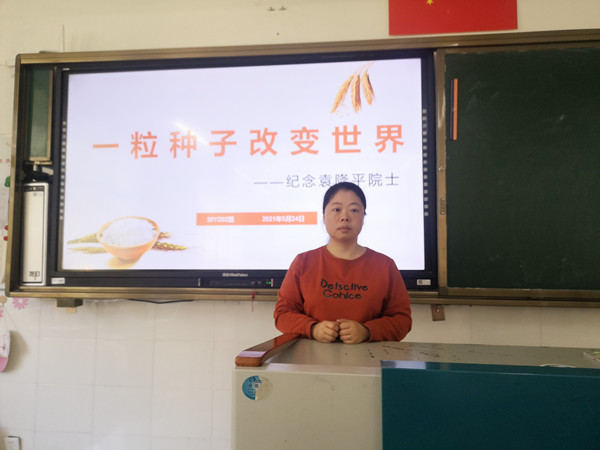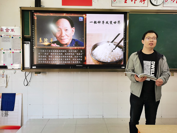 全体师生都用心、用情充分准备班会课内容。同学们收集关于袁隆平的故事、视频资料,通过分享学习了解袁老一辈子只做一件事,从极简到极致。他致力于杂交水稻技术的研究、应用与推广,创建超级杂交稻技术体系,为我国粮食安全、农业科学发展、世界粮食供给作出杰出贡献。课上学生纷纷发言,讲述袁老一生世界级的贡献;有的同学从袁隆平毕业后从事教学工作谈起;有的谈及袁老经历8年失败不放弃,海碱地、沙漠中种粮;有的从袁隆平给妈妈的一封信《妈妈,稻子熟了》说起;还有从袁隆平的梦想“禾下乘凉”和“覆盖全球”说起……