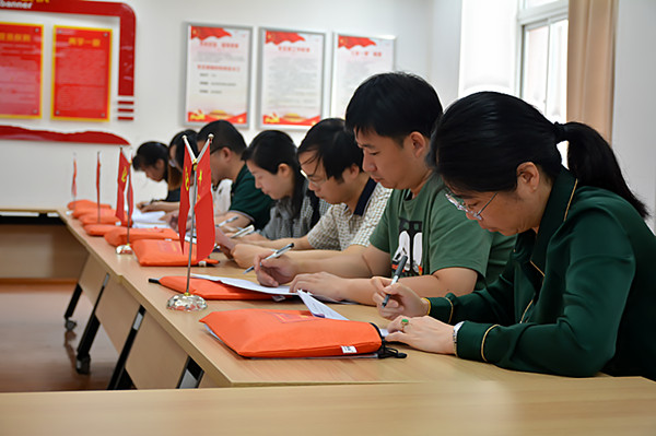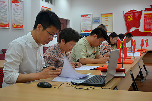 本次党史知识竞赛内容丰富,主要为“不忘初心、牢记使命”主题教育应知应会等相关内容,分为选择题、判断题、简答题三大版块,通过单选、多选、判断等题型,以现场竞赛卷的形式进行。知识竞赛分为两个赛区,经贸党员教师们在C2-209室奋笔疾书,各班的学生代表们则在C2-203室笔下生风。这是一场静悄悄的智慧较量和脑力大比拼,更是一个学习党史党建知识的良好机会。竞赛中,选手们都大显神通、各显其能,充分展现了党员教师深厚的政治理论功底和斗志昂扬的精神状态;学生们也你追我赶、奋勇争先,显然都是有备而来。在规定时间答题完毕后,系部将组织人员进行统一评分,成绩优胜者将给予荣誉证书以资鼓励。