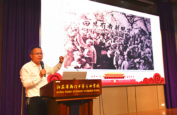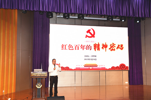 5月26日下午,海门中专在B1楼文苑报告厅举办了学生党史教育专题辅导讲座。校党委办公室主任洪龚明开设了题为“红色百年的精神密码”的专题讲座。各系各班级学生代表、班干部共400名学生听取了讲座。学生工作部主任张海华主持了活动。 洪龚明分“百年光阴,我们已经大不同”“读懂历史,才能读懂初心”“欲亡其国,必先灭其史”“以史为鉴,可以知兴替、励后人”四个部分解析了中国红色百年的精神密码,明确了青少年学党史的重要性和必要性。 在讲述过程中,洪龚明将国际的风起云涌与国内的祥和安泰相对比,将中国百年前的满目疮痍和百年后的民富国强相对照,引导同学们回顾了中国共产党的辉煌历史,让大家明白了“信仰”的无穷力量;结合国际形势,洪龚明讲述英雄事迹,阐释了“什么是国家的精神脊梁”,以此来明确学习党史的深远意义;同学们在生动鲜活的实例中明白了“青年引领时代,时代成就青年”的时代意义和当代青少年肩负的历史使命。 诗歌朗诵视频《少年中国说》激起了全场学生的爱国激情,同学们跟随领诵者,大声喊出“美哉我少年中国,壮哉我中国少年”的铿锵誓言。 洪龚明在讲座结束时对全体同学提出了希望,他希望大家学史更明理,学史更爱党,学史更担当,能以更好的精神状态撸起袖子加油干,为中华民族的伟大复兴奉献青春。(供稿:学生工作部 黄 娟)