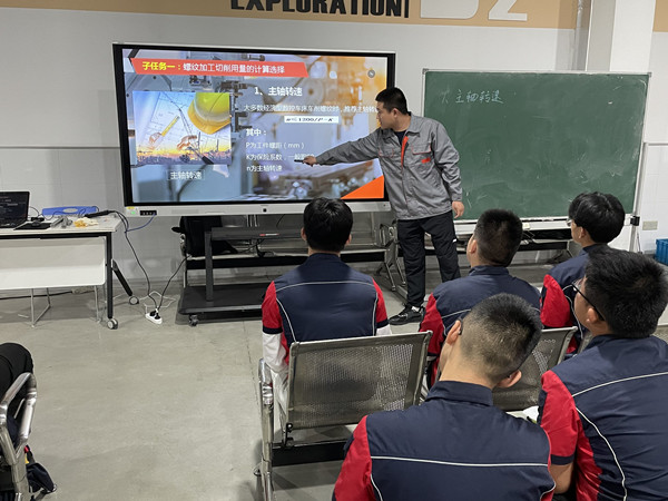 26日海安中专陈晨老师与海门中专李菲飞老师分别对《普通三角螺纹加工》这个主题进行“同课异构”示范教学,同时进行的还有如皋中专黄国老师和海门中专李建英老师的《单向连续运行控制线路的安装》主题教学。四位老师授课风格迥异,但师风翩翩,魅力袭人,学生全神贯注,心无旁骛。