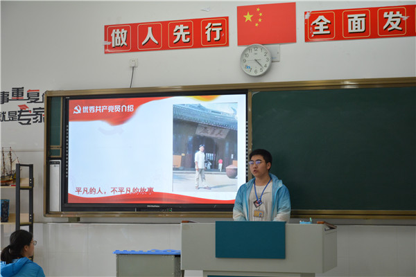 第二部分:拼搏发展,彰显党性。通过顾阳铭同学的简述,并观看了他爷爷的遗物和日记,了解了一位平凡的共产党人不忘初心,砥砺前行的一生,简述了广大共产党员崇高品格和伟大形象。