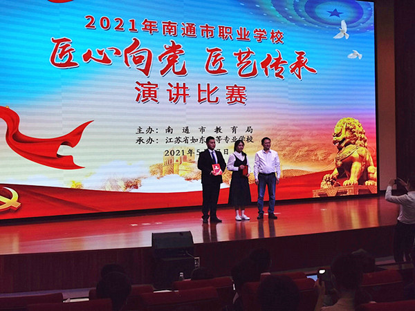 为深入学习贯彻落实“少年工匠心向党,青春奋进新时代”主题教育活动,5月27日下午2:00在如东中等专业学校求是楼二楼敬德堂举行了南通市职业学校“匠心向党,匠艺传承”演讲比赛,经贸系17MD01班蔡佳利同学代表学校参加了本次比赛,并斩获南通市特等奖。 活动有三个议程:一是南通市领导发言,他指出本次比赛旨在弘扬爱国精神,培养同学们以爱国主义为核心的民族精神和以改革创新为核心的工匠精神;二是是南通市各职业学校14名选手的精彩演讲;三是颁奖活动。 各学校参赛选手共计14人,蔡佳利同学脱颖而出,她演讲的主题是《匠心筑梦 恰是百年风华》,她用铿锵的演讲获得了全场热烈的掌声,表达出作为青年,要砥砺初心,不畏艰险,要用自己的肩膀扛起如山的责任,她激昂的青春风采,展现出了海专学子别样的精神风貌。 通过本次活动,同学们更加坚定跟党走的中国特色社会主义道路,崇尚精益求精的工匠精神,决心在今后的日子奋力向前,不惧艰险,奉献青春力量。(经贸系 尹金珠)