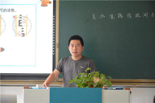 本节课的课题为《支水准路线观测与计算》,为了让学生更好地学习理论和开展实训,黄其中老师以任务为主线,设计了任务展示、任务准备、任务实施、任务总结、布置作业等教学环节,让学生在解决任务的过程中完成预定实训目标。在理论教授的过程中,黄老师通过播放微课结合理论讲解,使学生在观看视频中直观的学习实训操作方法,了解注意事项,理实一体;为了让学生掌握观测表格的记录填写,黄老师通过讲练结合的方式,由易到难,层层推进,结合超星泛雅教学平台等信息化手段的使用,让学生在轻松的课堂氛围中完成了难点的突破。在学生实训操作的过程中,黄其中老师不时参与小组的讨论及时纠正学生操作过程中发生的错误,并在任务完成后及时针对操作情况进行总结和点评,让学生总结经验、反思不足,为下次更好地开展实训练习打下基础。