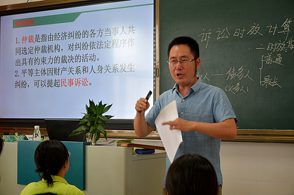 6月11日上午第三节课,严嘉挺老师在18MD02班开设了一节名为《诉讼时效的计算》海门区级公开课,全校各个系部20多位老师前来听课。