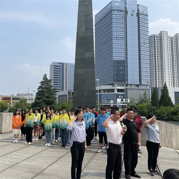 从党史中汲取力量,在实践中砥砺前行。6月12日下午,海门中专党委委员、党委办主任洪龚明、学生工作部副主任陆晓曦、校团委书记杨滨榕以及学校党员教师代表、团委、学生总会的优秀学生干部代表们来到苏中七战七捷纪念馆开展百处红色记忆寻根红色纪念地打卡活动,共同瞻仰英雄纪念碑,深切缅怀革命烈士。 本次活动共分三个环节进行:一是举行纪念仪式,二是参观纪念馆,三是线上打卡活动,活动由团委书记杨滨榕主持。 苏中七战七捷纪念馆是全国爱国主义教育示范基地、全国百家红色旅游经典景区,是苏中人民英勇抗争、不畏牺牲的红色纪念地,这里书写了中国战争史上以少胜多的典范篇章,加速了解放战争胜利进程,彰显了苏中军民伟大力量。 陵园内矗立着高大雄伟的革命烈士纪念碑,造型为一把“刺刀”,直插云霄,被称为“天下第一奇碑”,象征着华中野战军所向披靡,无坚不摧的英雄气概,在气势磅礴的纪念碑前,党员教师在党旗下重温入党誓词,共青团员们在团旗下庄严宣誓,共忆初心。 团委秘书长张裔天表示:今年是建党一百周年,我们生活在这样幸福的时代,一定要珍惜先烈们用热血和生命换来的和平环境,更要牢记历史、不忘初心,做一个信念坚定、勇于担当、守党纪、遵党规的新时代共青团员。 海门中专党委委员、党委办主任洪龚明寄语青年学生:此次打卡活动,不仅使党员教师和团员学生们深切感受到革命战士不怕牺牲、奋勇杀敌和苏中人民积极支援前线、无私奉献的革命精神。同学们要继承先烈遗志,在今后的工作和学习中继承和发扬共产党人坚定的革命信念和优良的革命传统,坚定理想信念,全心全意为人民、为祖国、为社会做出应有的贡献。 参观结束后,学生们纷纷使用“行进中国 我心向党”打卡红色地标小程序线上打卡,把对英烈的怀念与崇敬写进留言中。(团委 冯勇杰)