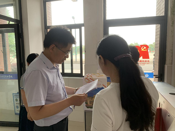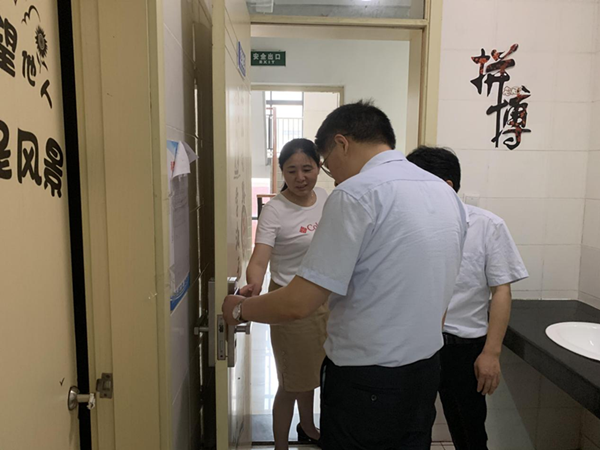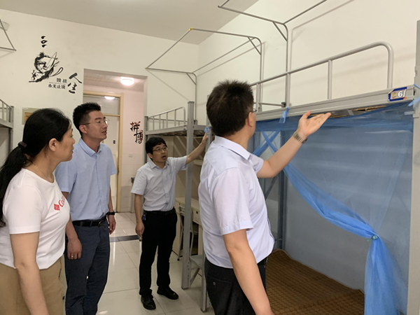 2021年中考日渐临近,海门中专一群后勤人正紧罗密布地筹备着中考期间的食宿行。6月13日上午,在副校长周桂岐带领下,后勤服务中心全体人员对宿舍、食堂进行了最后一次严密的体检,确保中考期间零失误、零差错。 检查组一行先来到学生公寓楼,随机抽查学生公寓楼的准备情况,分别就床铺的舒适度、被褥蚊帐的准备、公寓楼的环境卫生、热水的供应、空调的供电、门禁卡的筹备等问题一一进行了询问查看,尤其是公寓楼中考文化氛围布置得到了检查组的肯定。