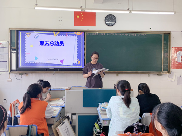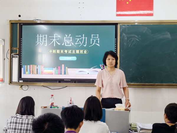班会内容围绕班级学期总结、期末考试复习、诚信考试三个模块,环节合理,环环相扣,层层深入。各班主任结合本班实际进行个性化教学,有的班主任组织班干部对本学期工作进行述职,交流分享工作经验,并对下学期工作初步规划;有的班主任组织学生畅谈复习方法,分享复习经验,制定复习策略;有的班主任组织帮扶结对;有的进行诚信考试承诺签名……最后,班主任对复习计划、复习方法、考试心态、答题技巧等方面进行了总结,指出习惯、自律、方法和毅力是关键。