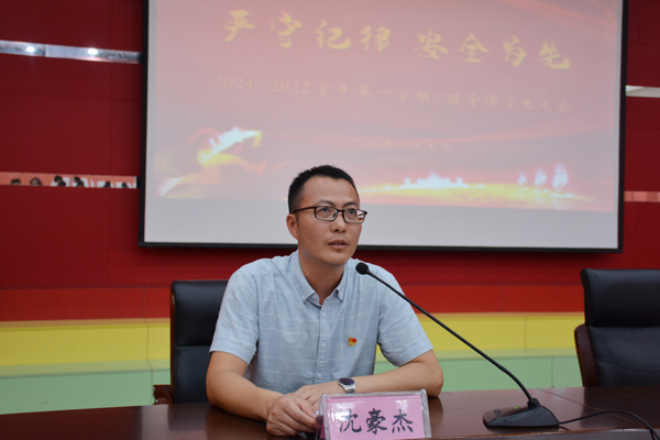 随后,沈豪杰副主任对班级常规管理工作作了具体的布置。主要包括学生的仪容仪表、卫生、校规校纪、良好行为习惯、阳光大课间等方面。他还对疫情期间的常态化管理方面作要求,包括班级测温顺序、晚自习下课顺序等。