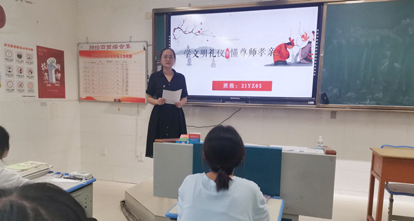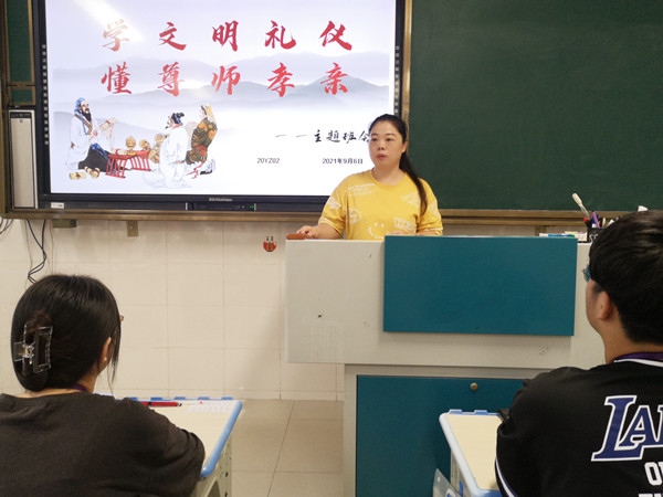 9月6日上午第一课,根据学校统一安排,财贸系各班组织开展了“学文明礼仪、懂尊师孝亲”主题班会教育活动。