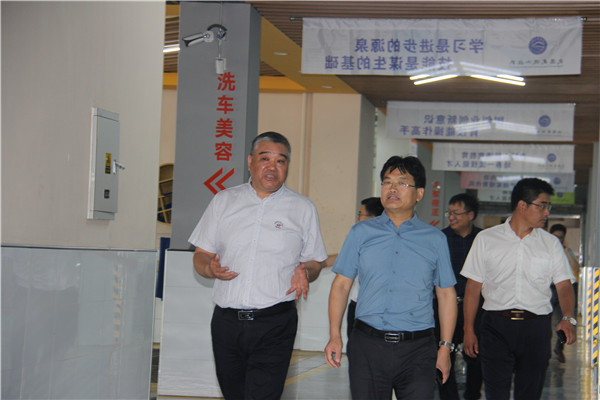 考察人员参观了汽修实训室、建筑模型馆等实训基地,参观过程中,宋健重点介绍了学校的实训室建设规模、专业设置和使用情况。