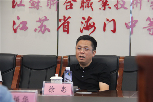 9月8日上午,新沂中专党委书记、校长何振华,副校长韦永,办公室主任张同颖一行三人来海门中专考察交流。校长徐忠、党委书记宋健、副校长王小辉热情接待。
