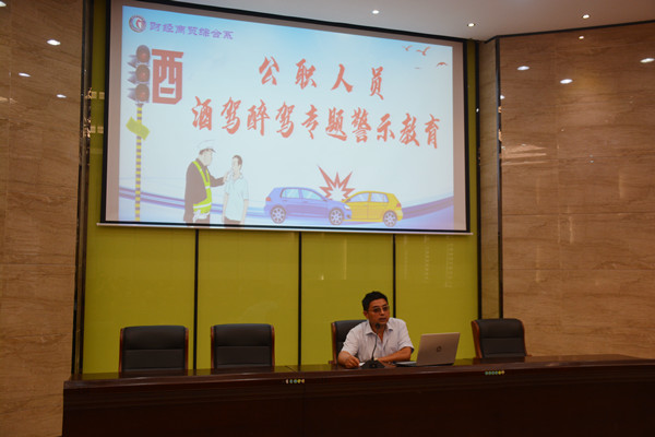 为切实增强公职人员法纪意识,深刻认识酒驾、醉驾的严重后果,财贸系于9月9日上午9:15在底楼名匠报告厅组织全体教师开展了公职人员酒驾醉驾专题警示教育活动。