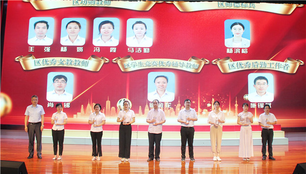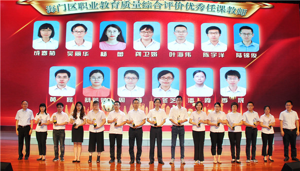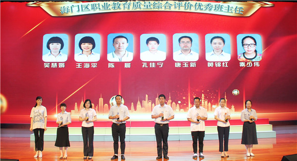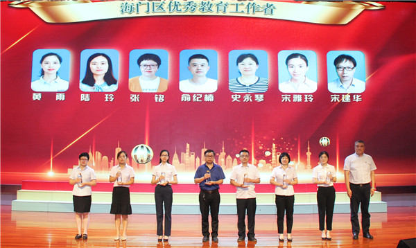 “烟花再美,也美不过你的笑,老师不老……” 9月8日,海门中专庆祝第37个教师节表彰活动在热情洋溢的献词声中拉开序幕。 校长徐忠代表学校党委、校长室,向教职员工致以节日慰问和衷心感谢。他强调,办好一所学校,最不能缺的就是优秀的教职员工!海门中专之所以能够拥有这么好的发展生态,之所以能够把一个个不可能变成可能,把一件件平常事做成不简单,最重要的就是因为拥有了一大批师德师风好、专业发展快、课堂教学效率高的优秀教师,是因为全体教职员工能够顾全大局、同心同德、同向而行,为学校发展一起添砖加瓦,一同增光添彩。 校党委书记宋健宣读了表彰名单。49人获海门区级表彰,分别是:13位教师获评“海门区职业教育质量综合评价优秀任课教师”;7位教师获评“海门区职业教育质量综合评价优秀班主任”;7位教师获评“海门区职业教育质量综合评价优秀教研组长”;6位教师获评“海门区职业教育质量综合评价优秀中层干部”;8位教师分别获评“海门区师德标兵、功勋教师、优秀支教教师、优秀后勤工作者、学生竞赛优秀辅导教师”;7位教师获评“海门区优秀教育工作者”;产业学院创新团队获评“四有”好教师团队。 学校领导为获奖者颁奖,并合影留念。 做幸福的教师,是目标;幸福地做教师,是践行。宋雅玲晒出专属自己的“小幸福”:一直被惦记的幸福;被师生认可的幸福;卓越团队一份子的幸福;努力认真的幸福;在海专工作的幸福…… 三年支教路,一生援疆情。肖锦讲述了在“坚守初心”信念的激励下,克服困难完成援疆使命的故事,展现了海门援疆教师的风采,展示了海门中专人在重大任务前不畏难、不退缩的决心与勇气。“援疆为什么?”“在疆干什么?”“离疆留下什么?”通过分享,全体教师对援疆工作有了更直观深刻的认识,“援疆精神”也将激励更多教师,用实际行动,践行对国家、对党、对事业的热爱。 活动最后,一曲《老师,我想你!》唱出了对老师们款款的深情,唱出了为人师者最大的幸福,也将全场气氛推向了高潮!(图:黄蓉蓉 陈俊;文:顾佩佩)