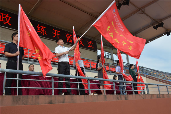 2021年9月25日上午,电子信息综合系21级新生在海门中专南操场参加了开营仪式,为期六天的军训课程拉开序幕。电信系主任江勇从校领导手中接过属于电信系“青春奋斗营”的旗帜,接过了沉甸甸的责任,也接过了学校满满的期待,电信学子将用激情无限、顽强拼搏的精神书写答案。