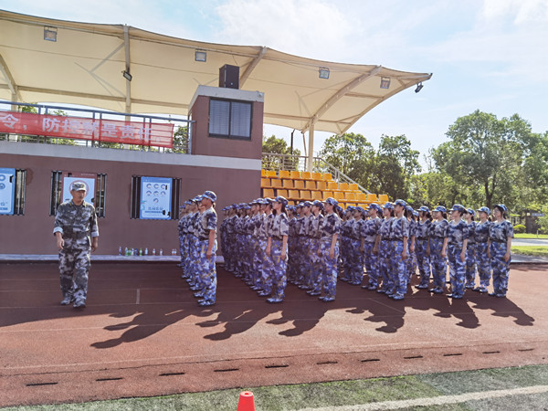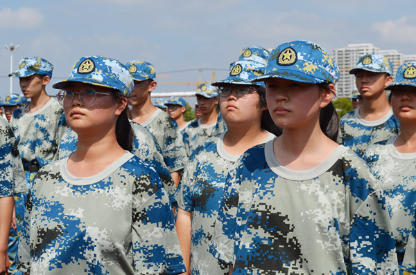 操场上,财贸学子七大方阵迎着旭日,整装待发。今天的“队列训练”分早、中、晚三次进行。立正、稍息、向右转、向左转、齐步走、正步走,每一个动作都要分解讲解,反复练习,教官粗中有细,手把手教,大家汗如雨下,但没有一个放松练习。渐渐的方阵中不协调的现象越来越少了,渐渐的动作开始变得整齐了。偌大的操场就是战场,让大家更加明白反复磨炼才能成全飒爽的军姿。训练间隙,还时不时传来悠扬而嘹亮的歌声。